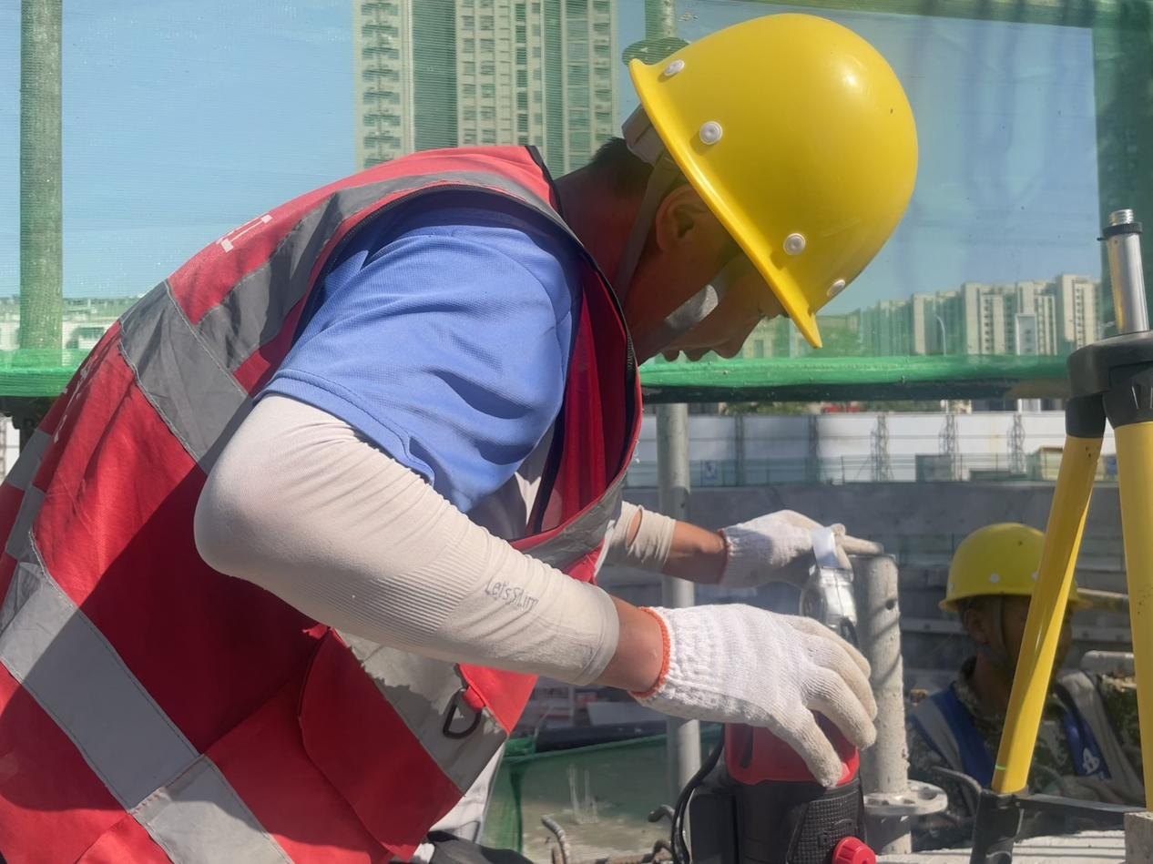 “五一假期天氣晴好,正是施工的黃金期,我們必須爭分奪秒搶進(jìn)度?!表椖拷?jīng)理鄭濤一邊仔細(xì)檢查施工質(zhì)量,一邊介紹道。在他身后,工人們正專注地忙碌著,安全帽下是一張張被汗水浸濕卻依然堅毅的面龐。