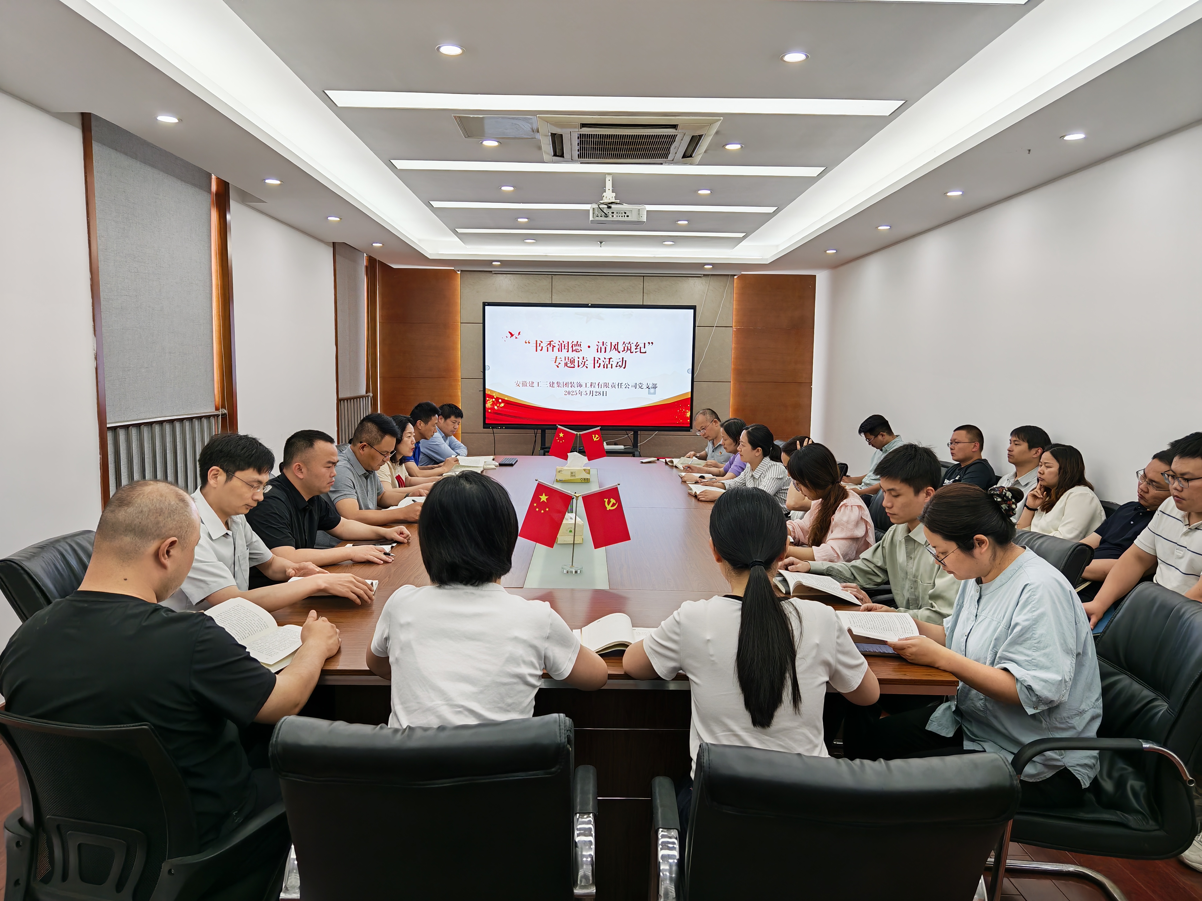 5月28日,裝飾公司在會(huì)議室組織開展了“書香潤(rùn)德·清風(fēng)筑紀(jì)”專題讀書活動(dòng),分公司機(jī)關(guān)和項(xiàng)目共20余人參加。