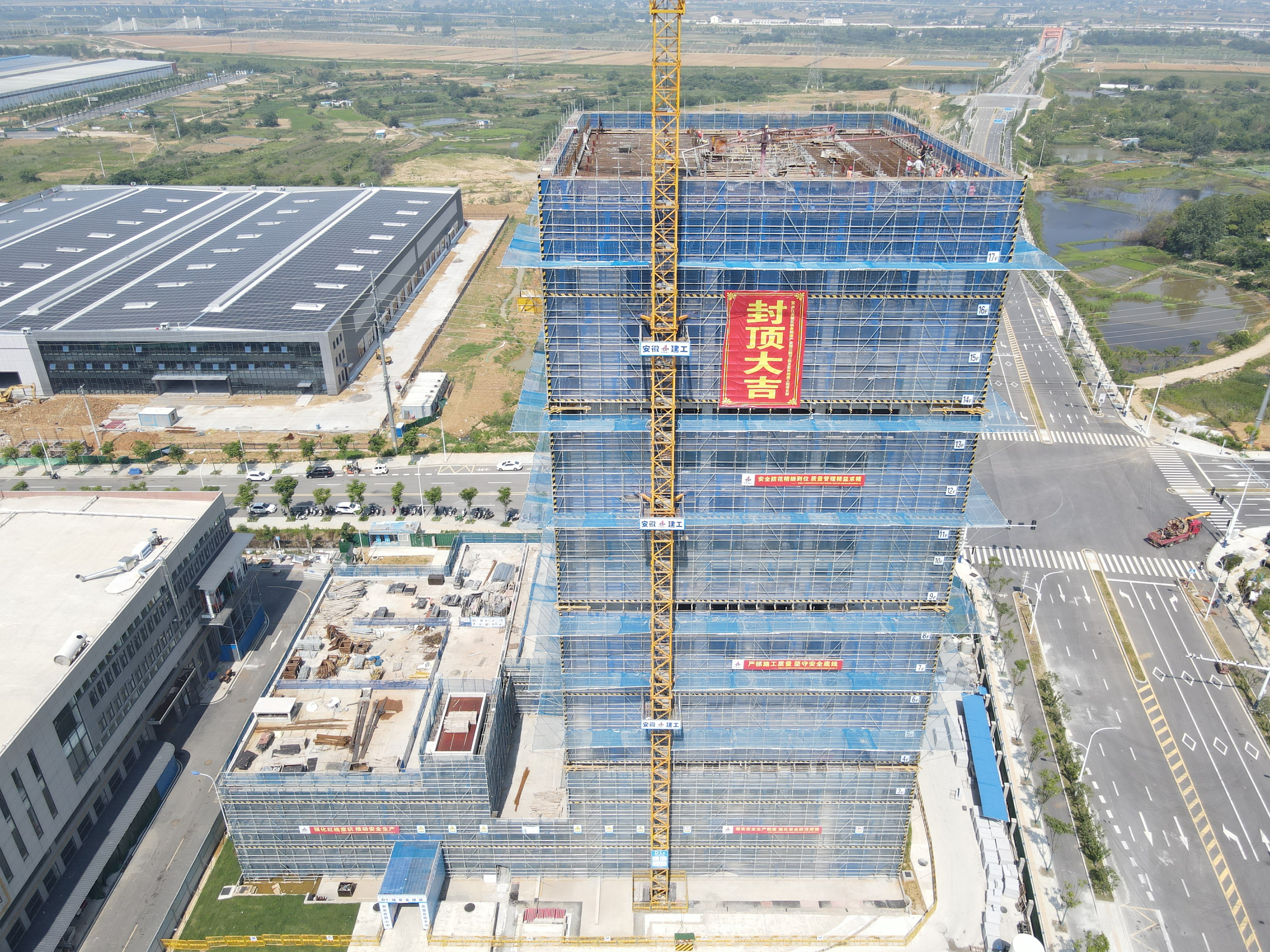 近日,隨著主樓最后一方混凝土澆筑完成,經(jīng)過(guò)項(xiàng)目團(tuán)隊(duì)222天的努力,由公司承建的廬江高新區(qū)裝備制造產(chǎn)業(yè)園三期D1樓及室外附屬工程主體結(jié)構(gòu)順利封頂,較計(jì)劃目標(biāo)提前17天,標(biāo)志著項(xiàng)目建設(shè)取得了重要階段性進(jìn)展,為后續(xù)工程如期完工奠定了堅(jiān)實(shí)基礎(chǔ)。