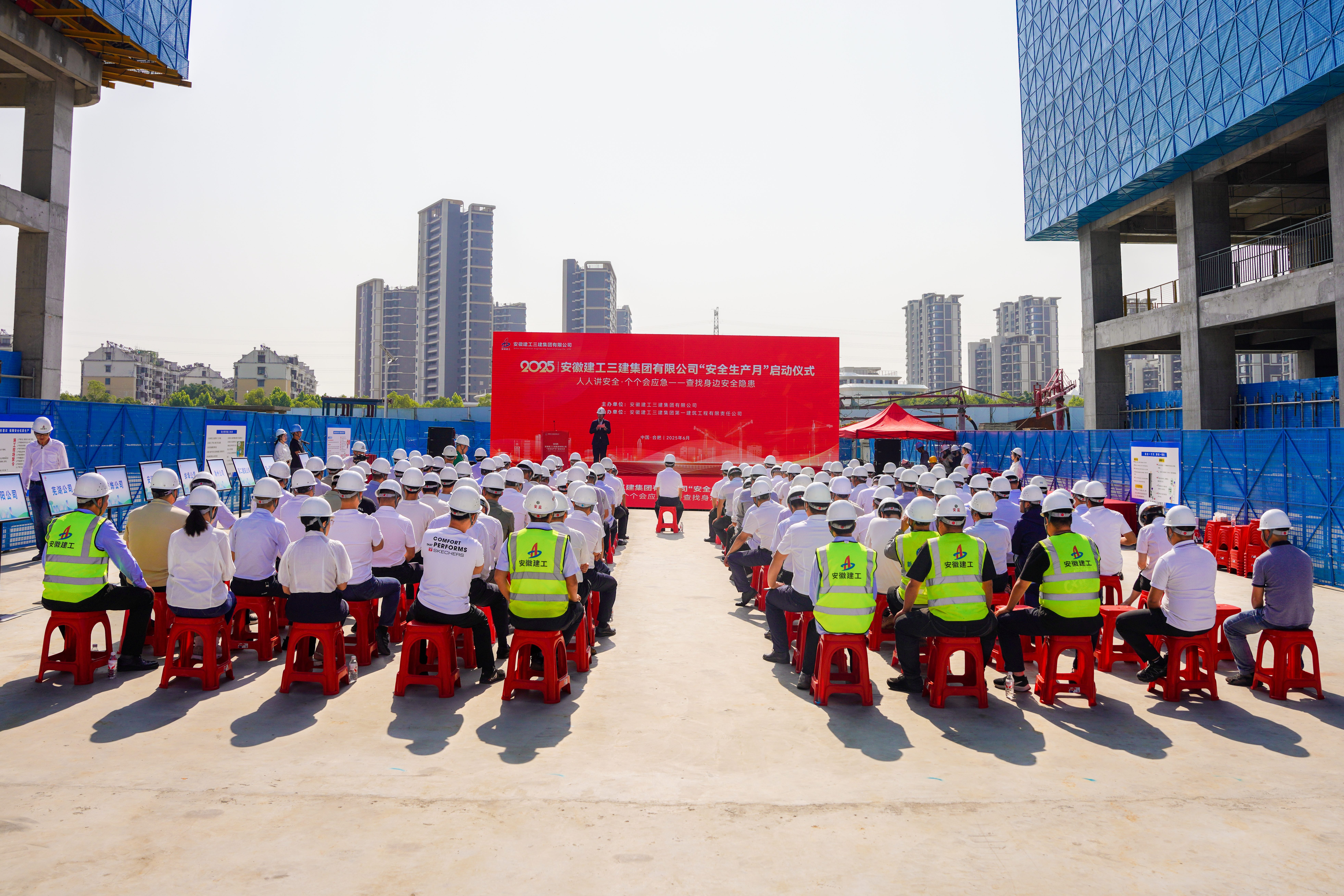 6月3日上午,“人人講安全 個個會應(yīng)急——查找身邊安全隱患”安徽建工三建集團2025年“安全生產(chǎn)月”啟動儀式在合肥未來大科學(xué)城片區(qū)(一期)儀器儀表產(chǎn)業(yè)園項目舉行。公司領(lǐng)導(dǎo)班子成員出席儀式。