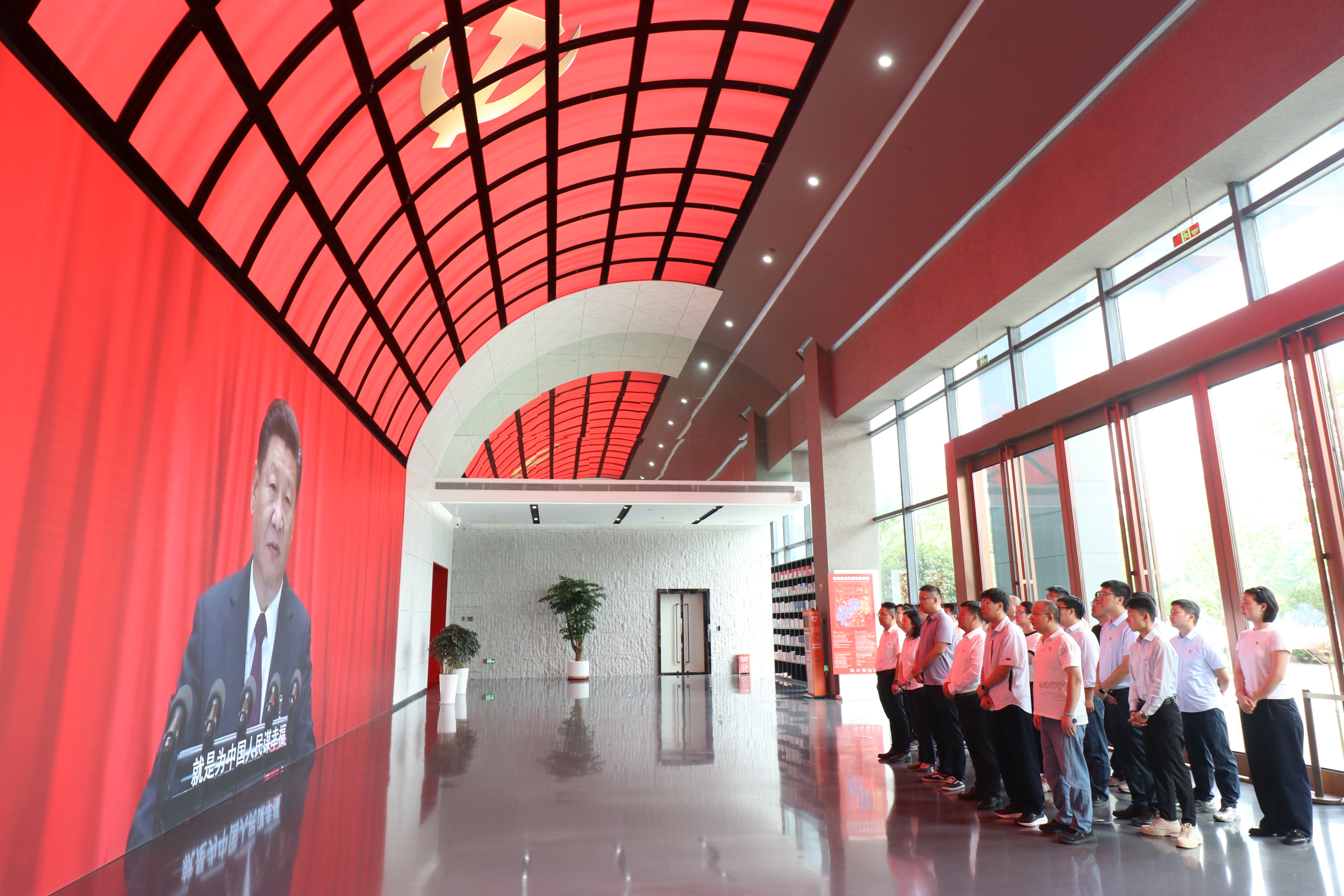 在專業(yè)講解員的引導(dǎo)下,全體黨員有序步入教育館集中觀看了《永遠在路上》主題開場片,隨后依次參觀了“紀(jì)律立黨 從嚴(yán)治黨”“廉潤江淮 清風(fēng)揚帆”“以案為鑒 警鐘長鳴”“不忘初心 永葆清廉”等系列展廳。展廳內(nèi),一個個觸目驚心的案例、一幅幅發(fā)人深省的畫面、一句句痛徹心扉的懺悔,為全體黨員敲響警鐘,提醒全體黨員要以案為鑒,深刻反思、引以為戒,時刻堅定理想信念,自覺加強黨性修養(yǎng),始終做到忠誠堅定、遵紀(jì)守法、清正廉潔。最后,全體黨員來到宣誓廳。面對鮮紅的黨旗,黨員們整齊列隊,高舉右拳,莊嚴(yán)地重溫入黨誓詞。