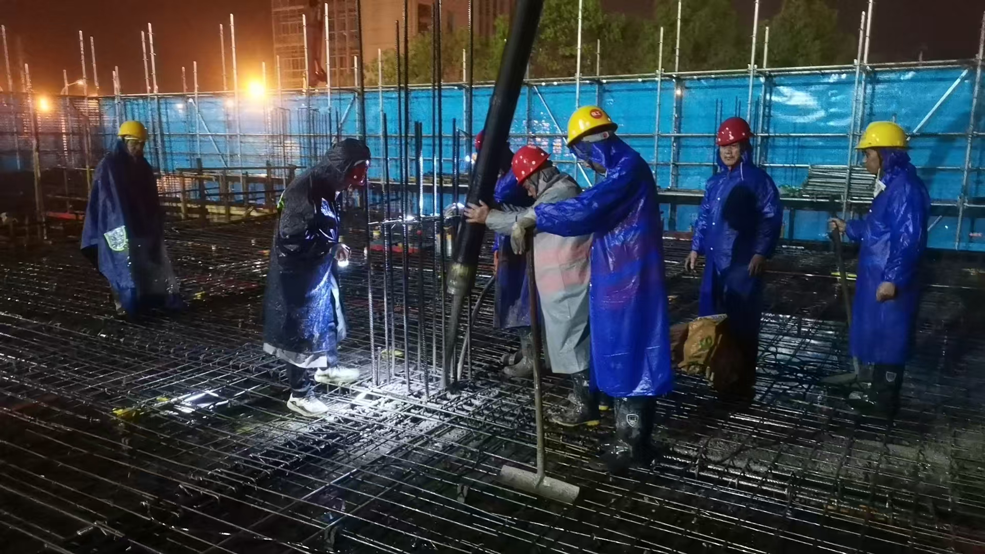 在全國第24個安全生產(chǎn)月期間,項目團(tuán)隊打出“安全+質(zhì)量”組合拳,緊扣“人人講安全、個個會應(yīng)急—查找身邊安全隱患”的“安全生產(chǎn)月”主題,多維度筑牢安全防線。通過懸掛安全標(biāo)語、發(fā)放安全宣傳單、組織全員觀看警示教育視頻等方式強化全員安全意識。每日召開安全晨會,全面排查施工風(fēng)險點,常態(tài)化開展安全技術(shù)交底與培訓(xùn),切實推動安全意識深入人心。此外,項目管理人員實行24小時輪班值守,既當(dāng)“安全哨兵”,又做“質(zhì)量尖兵”。這種“白+黑”的堅守,換來的是A-3#樓提前30天封頂?shù)牧裂鄢煽?,為后續(xù)施工贏得寶貴時間。