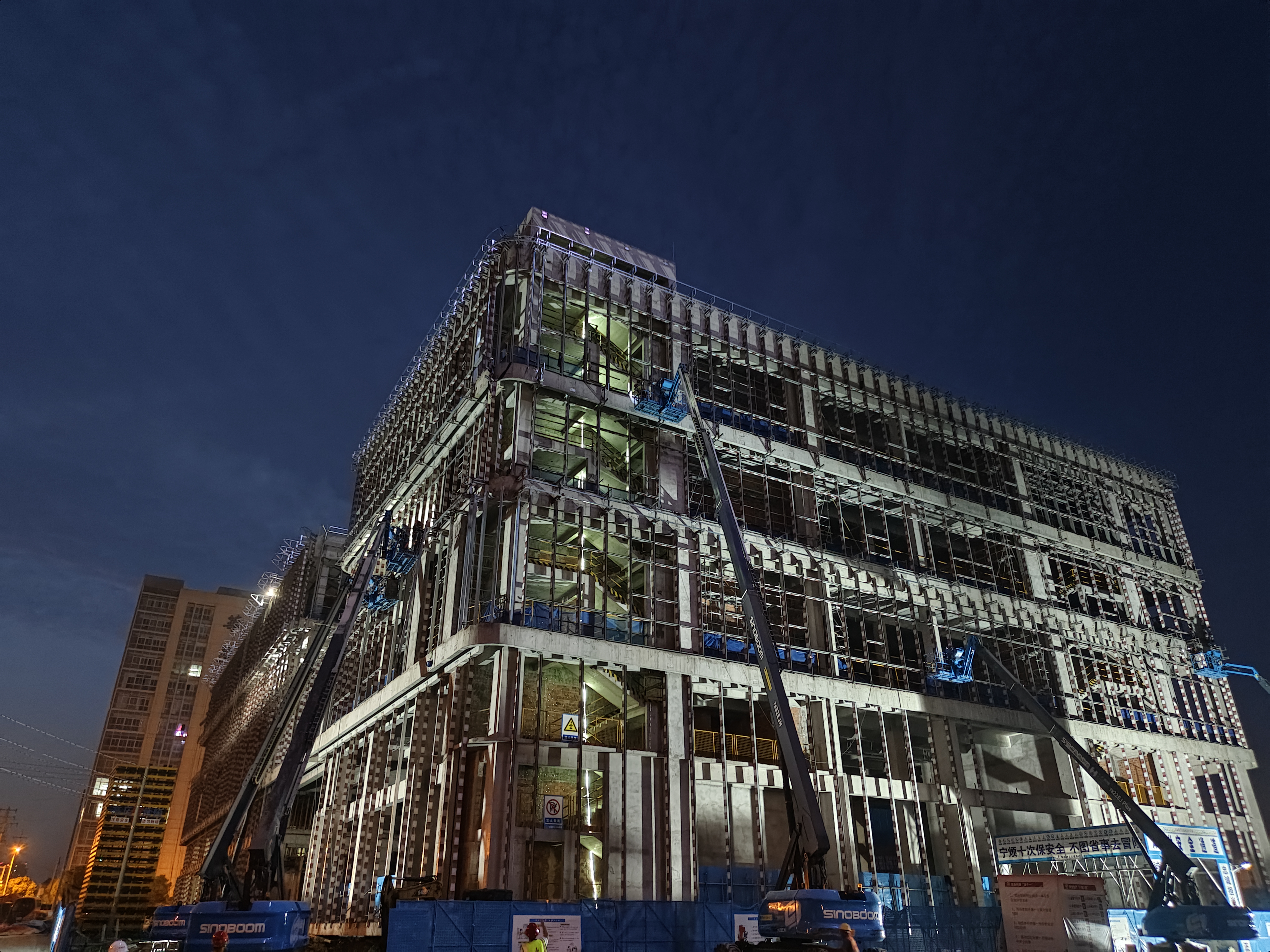 面對6月30日A-3#樓展廳開放的關(guān)鍵節(jié)點,項目部啟動“軍令狀”攻堅模式:將施工藍(lán)圖轉(zhuǎn)化為每日作戰(zhàn)圖,簽訂責(zé)任狀23份,召開進(jìn)度協(xié)調(diào)會46次。通過科學(xué)高效的輪轉(zhuǎn)作業(yè)模式,項目在4月30日率先實現(xiàn)A-3#樓封頂,目前,幕墻施工已完成75%。與此同時,A-2#、A-4#樓幕墻施工進(jìn)度已達(dá)40%,A-1#樓幕墻基礎(chǔ)施工全面展開。