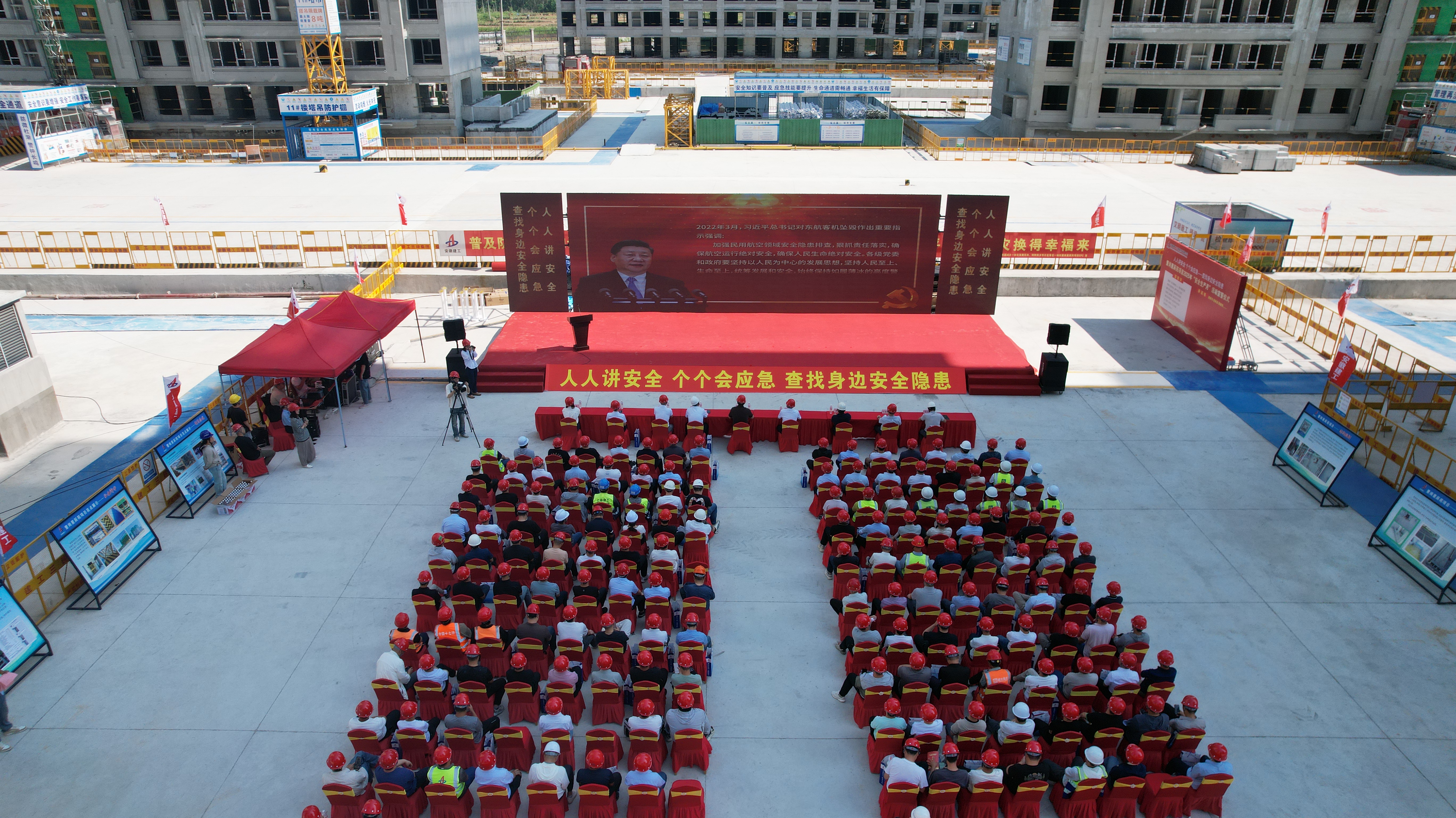 肥西縣住房和城鄉(xiāng)建設(shè)局在第二建筑公司董崗星辰苑項(xiàng)目現(xiàn)場(chǎng)舉辦“人人講安全,個(gè)個(gè)會(huì)應(yīng)急——查找身邊安全隱患”主題“安全生產(chǎn)月”啟動(dòng)儀式暨臨時(shí)用電應(yīng)急演練活動(dòng)。