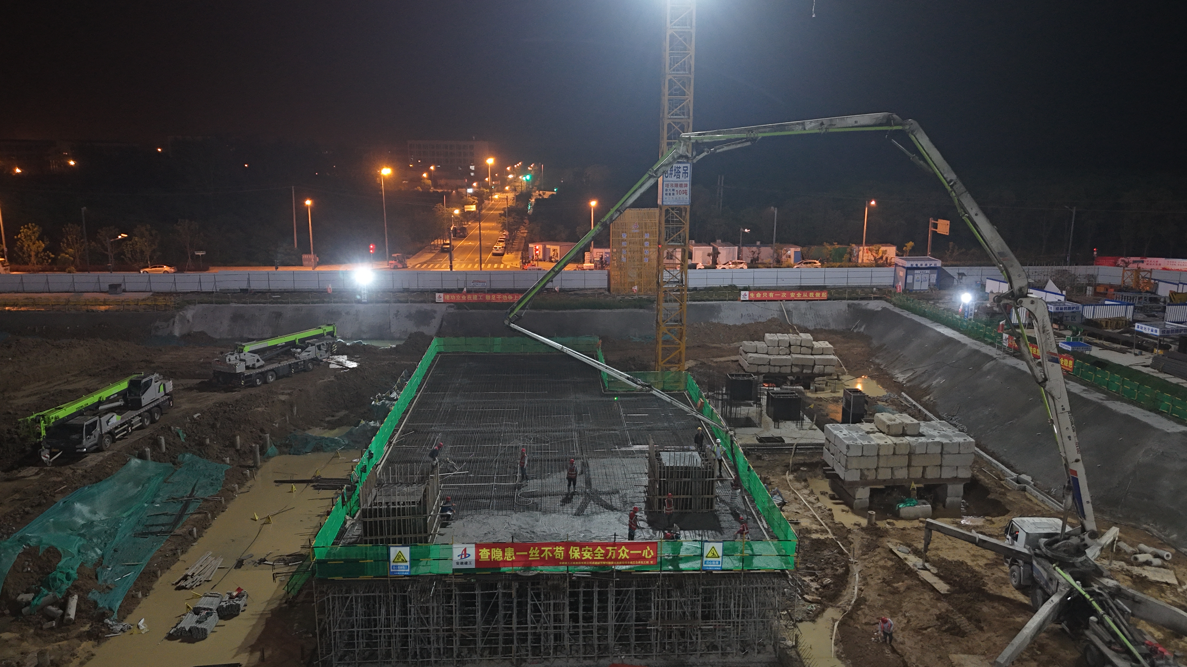 在1#樓、2#樓筏板混凝土澆筑的關(guān)鍵任務中,項目團隊展現(xiàn)出非凡的擔當。20日至21日暴雨突襲,管理人員堅守一線指揮,工人們頂風冒雨作業(yè),雨水浸透衣衫卻未澆滅他們的熱情,經(jīng)過48小時科學高效輪轉(zhuǎn)作業(yè),圓滿完成澆筑任務,為后續(xù)施工爭取寶貴時間。