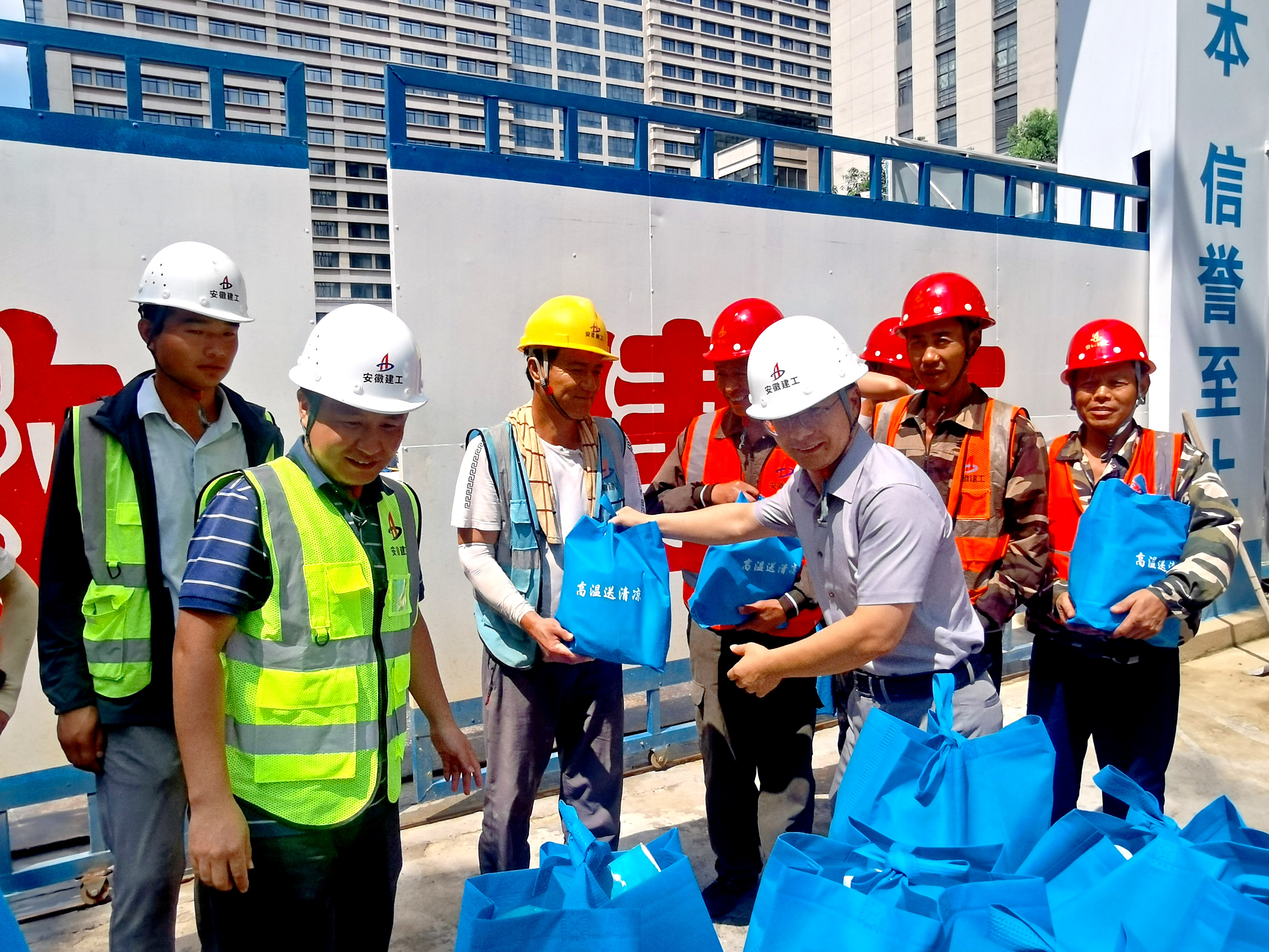 近日,持續(xù)的高溫天氣給堅(jiān)守在項(xiàng)目一線的建設(shè)者們帶來了嚴(yán)峻考驗(yàn)。為切實(shí)做好夏季防暑降溫工作,保障一線員工的身體健康和生命安全,公司黨委書記、董事長傅宏林,黨委副書記、總經(jīng)理王明禮,領(lǐng)導(dǎo)班子成員劉鳳平、張志剛、宋之虎、柯宅邦分赴包保督導(dǎo)項(xiàng)目施工現(xiàn)場,開展夏季“送清涼” 慰問活動(dòng),為廣大一線建設(shè)者送去夏日清涼和企業(yè)關(guān)懷,并開展包保督導(dǎo)工作。