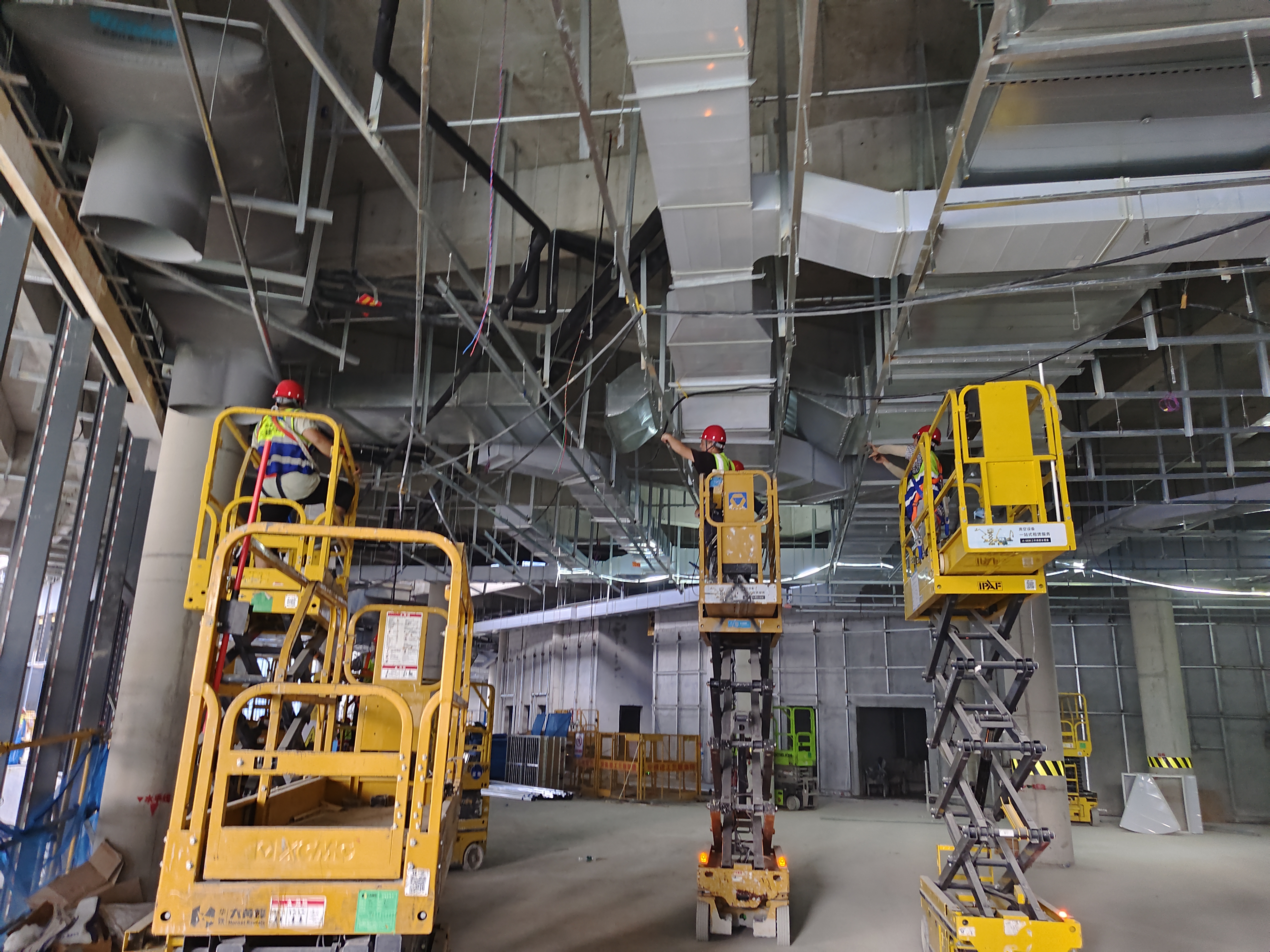 為應(yīng)對(duì)項(xiàng)目施工中的“高熱地帶”,項(xiàng)目團(tuán)隊(duì)精準(zhǔn)施策:一方面加大硬件投入,部署強(qiáng)力風(fēng)扇攪動(dòng)空氣,有效降低核心作業(yè)區(qū)溫度;另一方面,針對(duì)陽光直射的工作面,專門在曲臂車上架設(shè)遮陽傘,為工人營造出相對(duì)涼爽的作業(yè)環(huán)境。