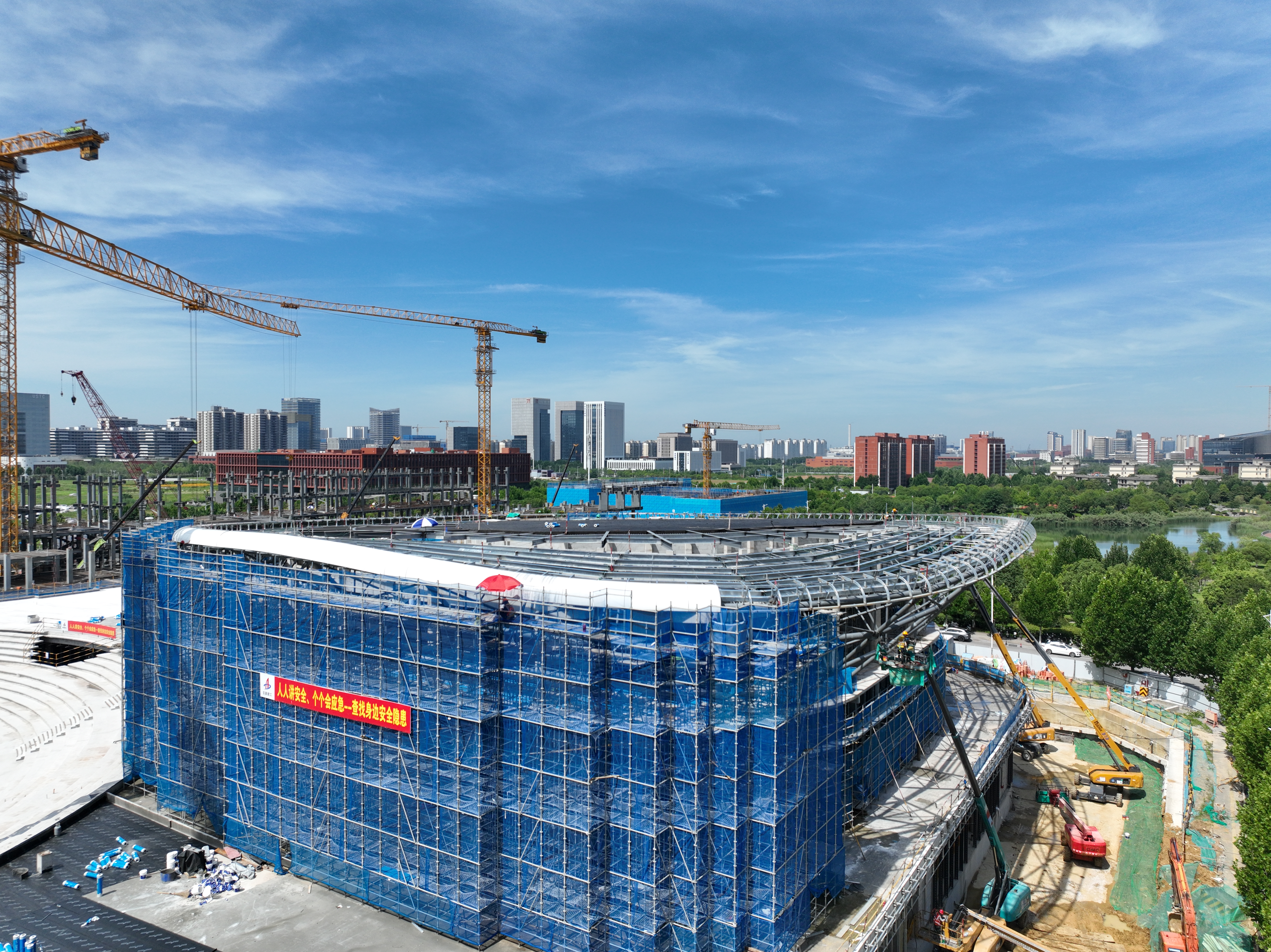 面對(duì)高溫“烤”驗(yàn),中國科大科技商學(xué)院裝飾項(xiàng)目團(tuán)隊(duì)毫不松懈,始終將一線人員的身體健康放在心上,根據(jù)天氣溫度變化及時(shí)調(diào)整作業(yè)安排,用責(zé)任與擔(dān)當(dāng)筑牢安全防線。當(dāng)前,項(xiàng)目主樓B區(qū)幕墻主龍骨安裝已完成70%,面板安裝達(dá)20%;報(bào)告廳隔墻完成85%,墻面鋁板骨架完成50%,各項(xiàng)工作均按計(jì)劃穩(wěn)步推進(jìn)。接下來,團(tuán)隊(duì)將繼續(xù)以“戰(zhàn)高溫、搶進(jìn)度、保質(zhì)量”的拼搏姿態(tài),緊盯節(jié)點(diǎn)目標(biāo),全力沖刺。