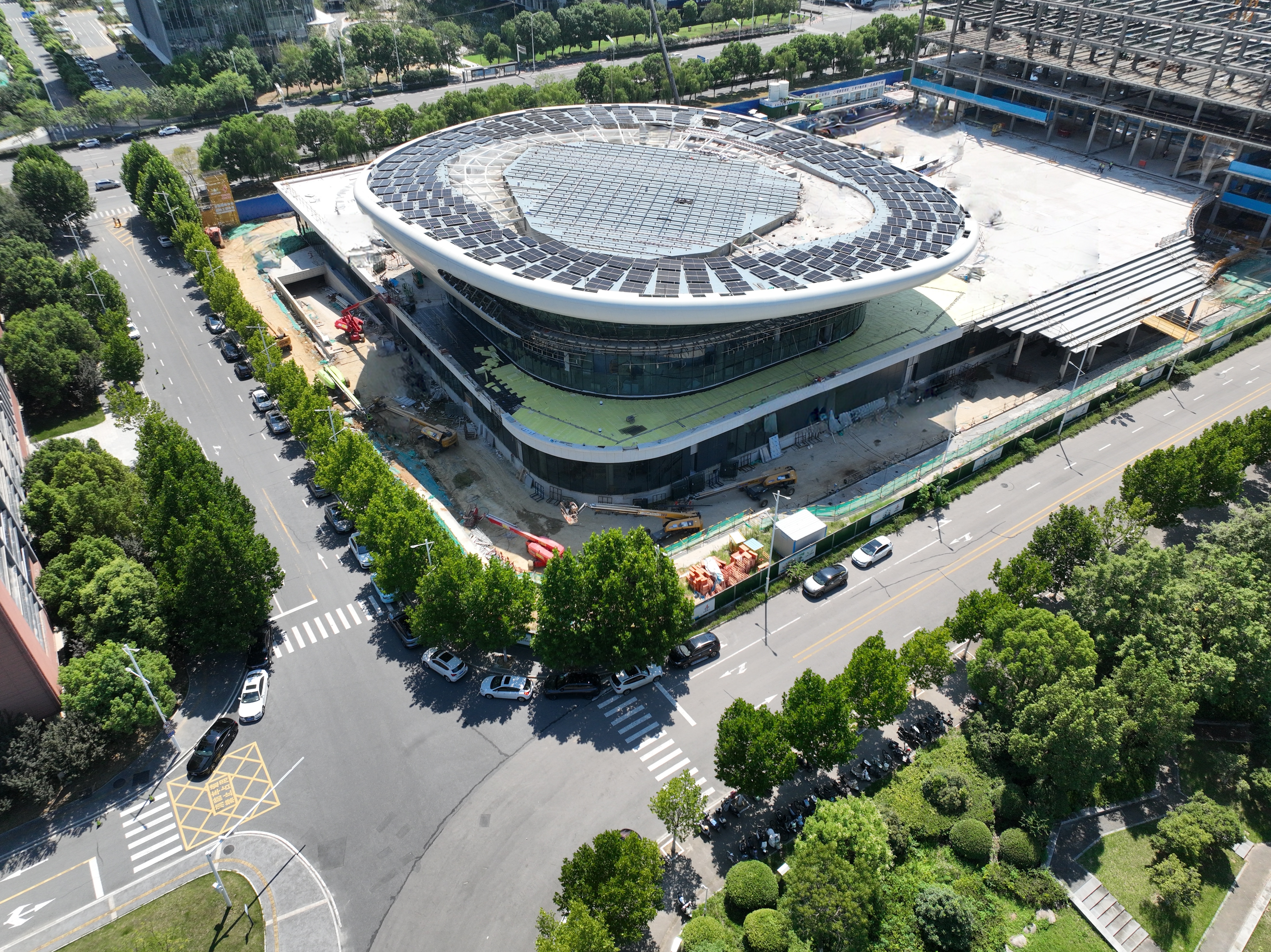 項(xiàng)目施工中面臨諸多挑戰(zhàn),報(bào)告廳處的雙曲面造型幕墻堪稱(chēng)其中最難攻克的 “堡壘”。這個(gè)異型幕墻系統(tǒng)由1544塊雙曲鋁板、350塊扭曲玻璃以及近3萬(wàn)個(gè)坐標(biāo)點(diǎn)構(gòu)成,所有構(gòu)件均為雙曲異形且尺寸跨度大,對(duì)加工精度和安裝貼合度的要求極高。項(xiàng)目團(tuán)隊(duì)不僅要解決復(fù)雜的放線(xiàn)定位問(wèn)題,還要將復(fù)雜的圖紙精確還原到施工現(xiàn)場(chǎng),這無(wú)疑是一項(xiàng)艱巨的任務(wù)。