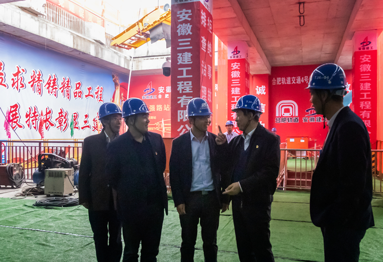 吳越一行參觀三建合肥地鐵4號線4標段項目部并同公司黨委書記左登宏交流項目黨建工作