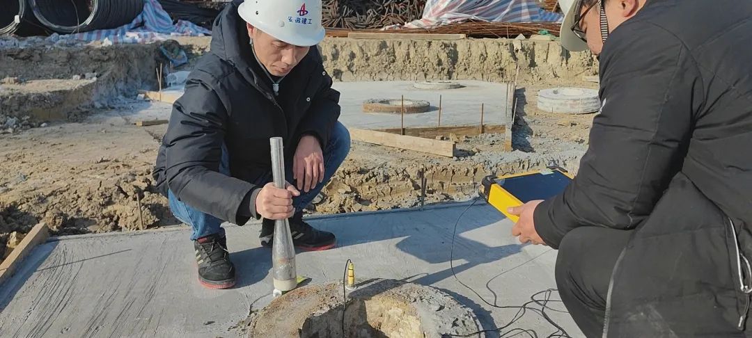 基礎公司郭磊在項目現(xiàn)場配合做樁基檢測。