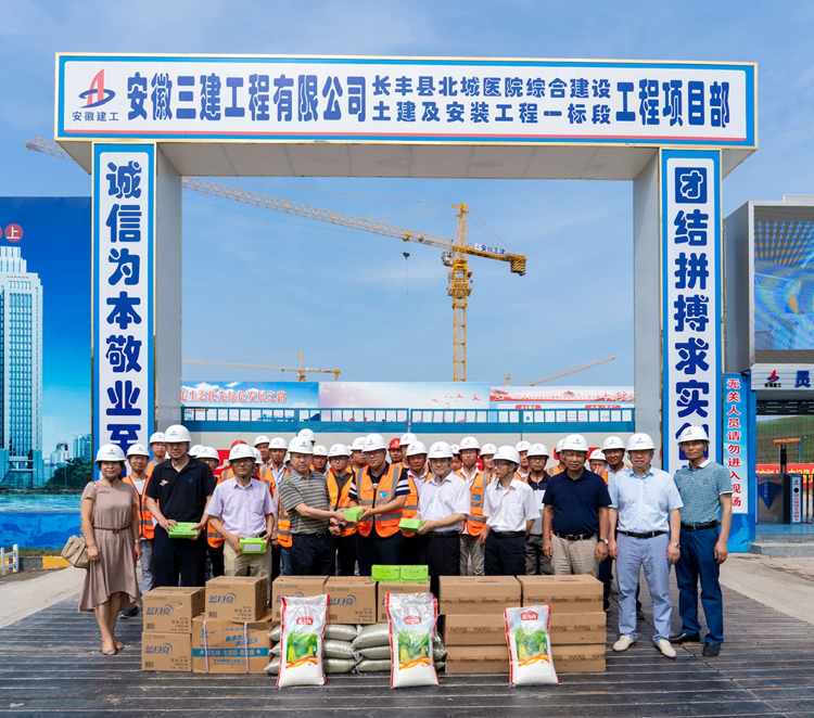 建工控股總法律顧問(wèn)申玉恩到我公司長(zhǎng)豐縣北城醫(yī)院項(xiàng)目“送清涼”