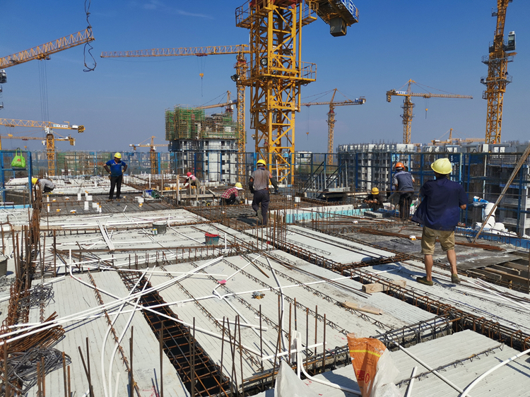 7月25日,在十二公司肥西優(yōu)步學(xué)府項(xiàng)目上結(jié)構(gòu)施工現(xiàn)場,為保證計(jì)劃工期,項(xiàng)目工人們戰(zhàn)高溫、斗酷暑,正在進(jìn)行頂板上綁扎鋼筋及水電預(yù)埋,揮汗如雨奮戰(zhàn)在第一線