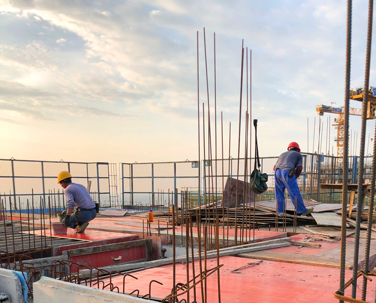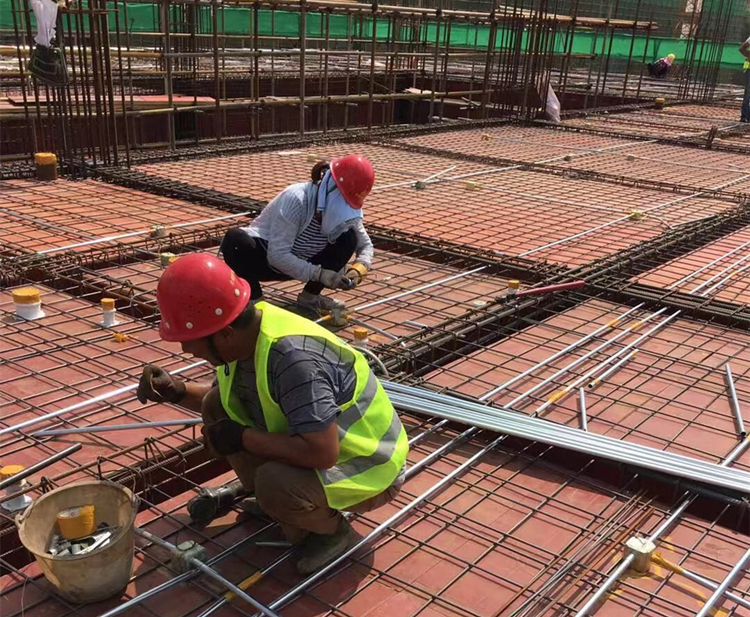 為保證施工工期,二公司、七公司共同承建的濱湖沁園項(xiàng)目鋼筋班組工人冒著高溫天氣綁扎鋼筋,項(xiàng)目管理人員跟班作業(yè)同時(shí)進(jìn)行檢查。為防止管理人員及工人出現(xiàn)高溫中暑現(xiàn)象,項(xiàng)目制定了嚴(yán)格的作息時(shí)間,上午10:00-下午3:00時(shí)間段禁止室外作業(yè),以保證施工人員的身體健康。