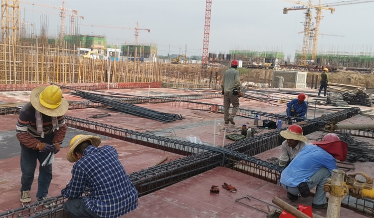 十一公司繁昌春谷熙岸、天長恒大一標(biāo)等項(xiàng)目現(xiàn)場工正在綁扎鋼筋、緊張作業(yè)