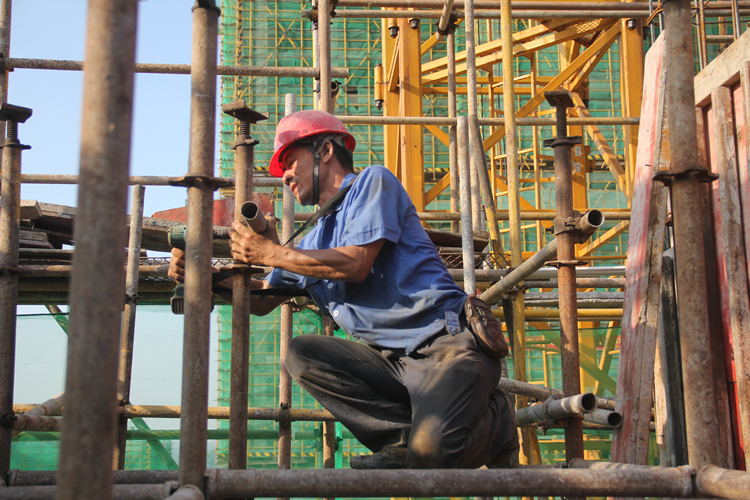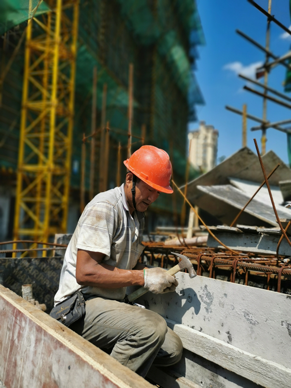 圖為九公司十里春風(fēng)項(xiàng)目一線職工頂著烈日奮戰(zhàn)在第一線