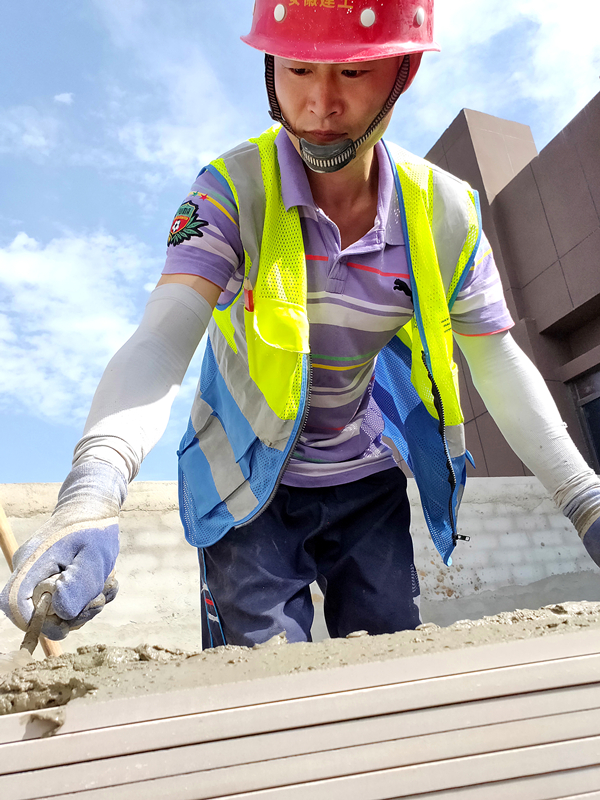 裝飾公司遠(yuǎn)在陜西銅川的項(xiàng)目依然緊張施工,圖為銅川悅豪酒店裝飾項(xiàng)目部瓦工師傅露天戰(zhàn)高溫?fù)尮?/span>
