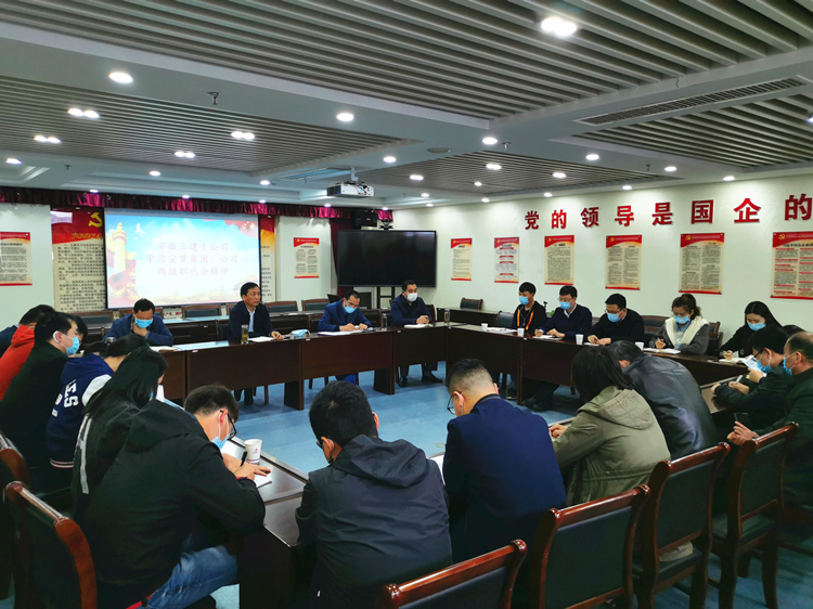 4月17日下午,安裝公司在分公司三樓會(huì)議室開展黨課學(xué)習(xí)活動(dòng),重點(diǎn)傳達(dá)了建工控股一屆七次職代會(huì)暨2020年工作會(huì)議精神及安徽三建十二屆一次職代會(huì)精神,安裝公司領(lǐng)導(dǎo)班子成員、黨員及各機(jī)關(guān)科室、項(xiàng)目骨干等人員參加了黨課學(xué)習(xí)。分公司黨支部書記劉旭峰為大家講解黨課。