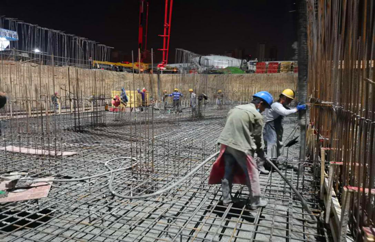 “五一”假期期間,一公司五省八地各項(xiàng)目搶抓黃金施工期,加大機(jī)械、人員投入力度,在保證工程質(zhì)量的前提下,加快施工進(jìn)度。圖為一公司北海吾悅廣場項(xiàng)目五一期間澆筑混凝土。