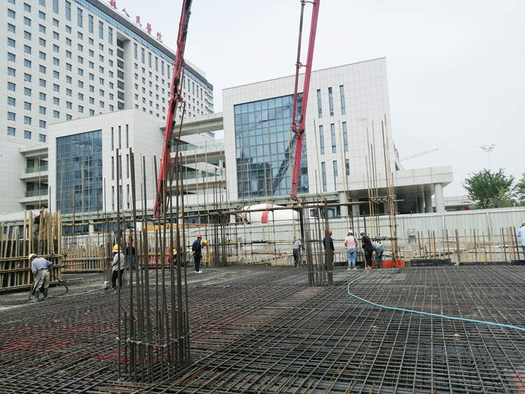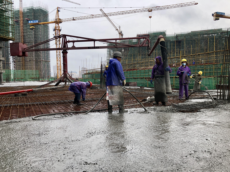 假日期間,十公司動力三村項(xiàng)目地下室第一塊頂板澆筑混凝土抓緊時間有序施工,為了保障澆筑工作順利進(jìn)行,項(xiàng)目部還組織黨員同志為一線工人送清涼。圖為澆筑現(xiàn)場。