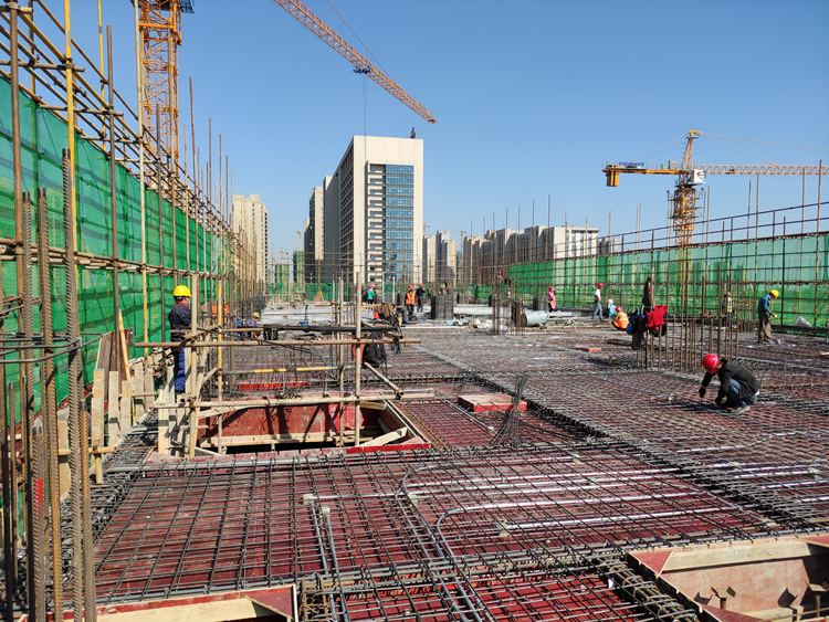 八公司合肥市二院、黃麓師范學(xué)院、臨泉銀杏苑、臨泉十中、合肥市圖書館等項(xiàng)目設(shè)者以高昂的斗志、火熱的激情,奮戰(zhàn)在復(fù)工復(fù)產(chǎn)的第一線,加班加點(diǎn),用實(shí)際行動詮釋著“勞動最光榮”。圖為合肥市二院項(xiàng)目職工正在進(jìn)行5#樓六層鋼筋綁扎工作。