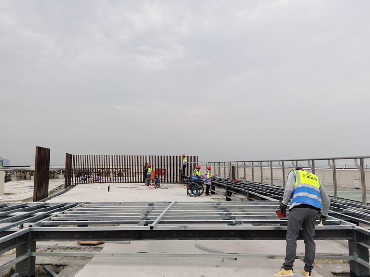 受新冠疫情影響,裝飾公司各項(xiàng)目復(fù)工節(jié)點(diǎn)比計(jì)劃稍有滯后,為了追回進(jìn)度,五一小假期間,各在建項(xiàng)目不停工,管理人員依然堅(jiān)守崗位,加班加點(diǎn)利用晴好天氣搶回工期。圖為裝飾公司安徽創(chuàng)新館2號館觀景平臺施工。