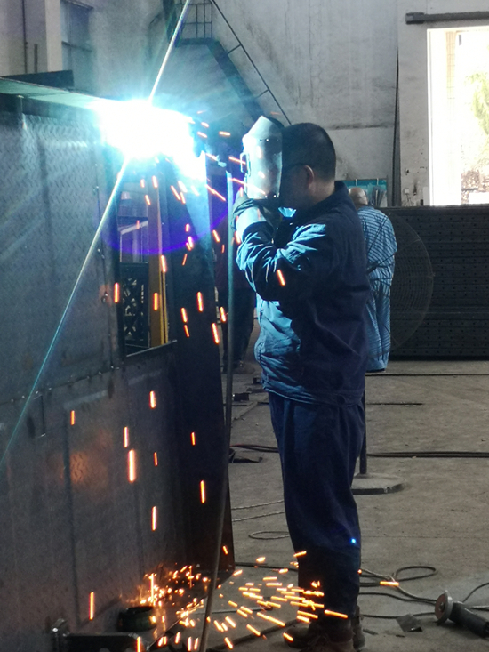 連日來(lái),輕鋼龍骨公司采取了多項(xiàng)措施戰(zhàn)高溫、保生產(chǎn)。一方面為車(chē)間班組發(fā)放了毛巾、風(fēng)油精、人丹等防暑降溫物品和藥品;另一方面為各車(chē)間辦公室安裝了空調(diào)設(shè)施,供車(chē)間師傅乘涼、休息使用;此外,龍骨公司還加強(qiáng)車(chē)間班組人員用電、機(jī)械設(shè)備操作等安全教育,確保做到生產(chǎn)、人員安全,為廣大職工營(yíng)造安全生產(chǎn)環(huán)境。圖為輕鋼龍骨公司二車(chē)間師傅高溫下穿著長(zhǎng)袖工作服焊接人貨電梯產(chǎn)品。