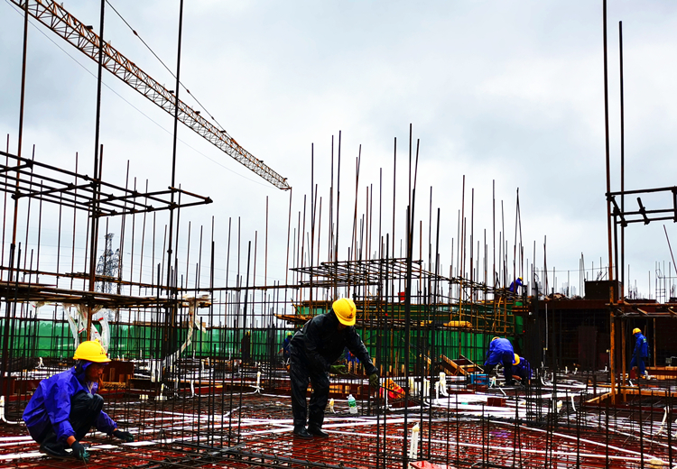 湛江力高項(xiàng)目冒雨綁扎鋼筋,搶工正當(dāng)時(shí)
